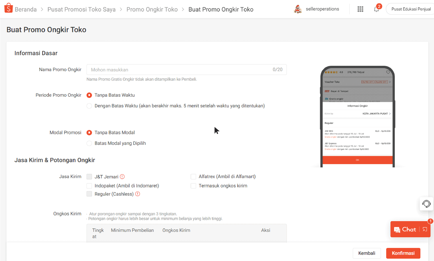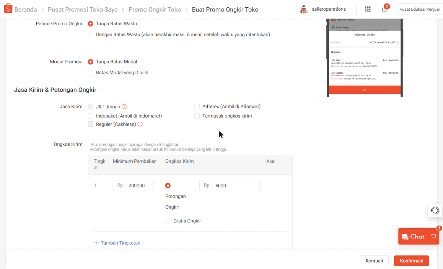 Mengelola Promo Ongkir Toko
