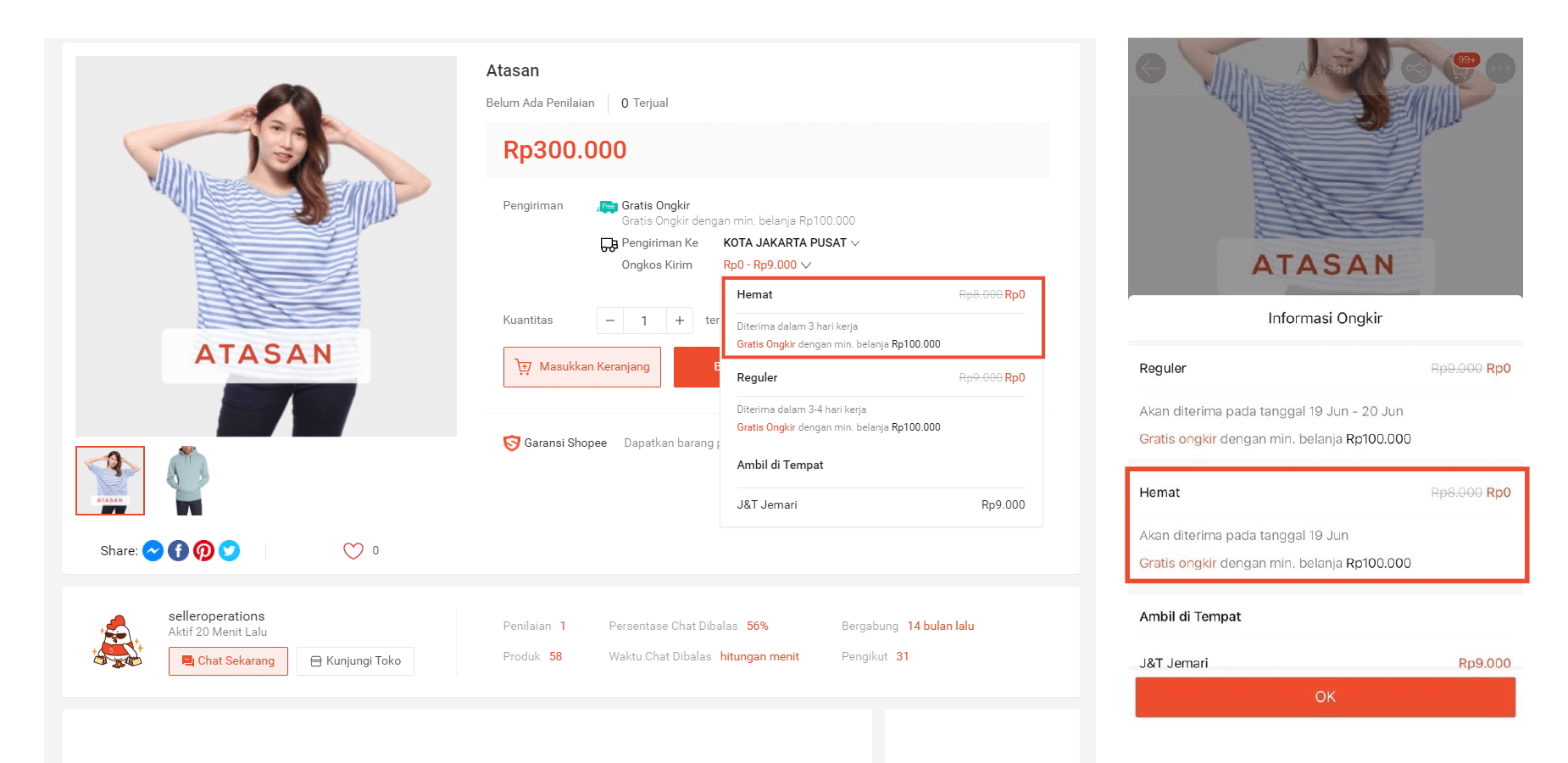 Promo Ongkir Toko yang Anda buat akan ditampilkan pada halaman produk di aplikasi dan situs Shopee.