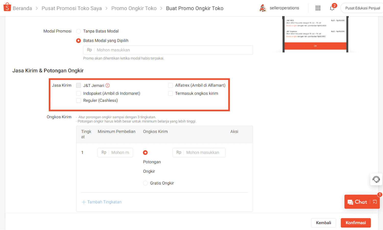Tentukan Jasa Kirim & Potongan Ongkir untuk Promo Ongkir Toko: