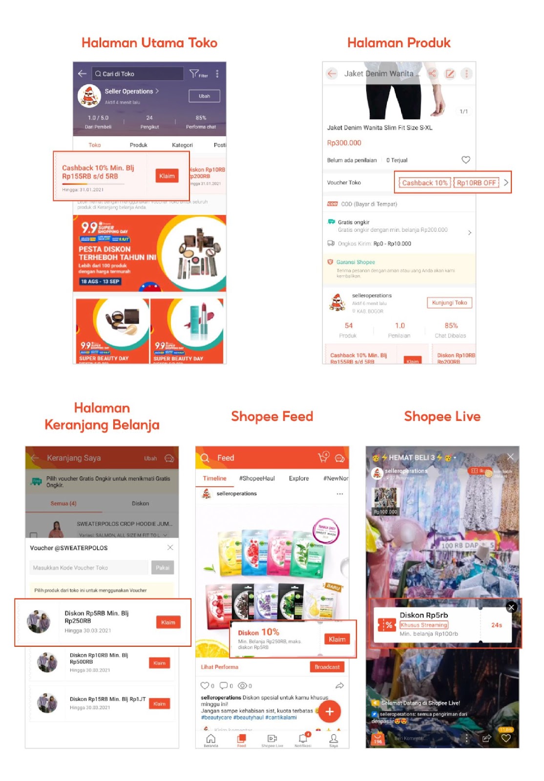 - Bergabunglah dalam program Flash Voucher di mana Penjual dapat menominasikan voucher agar dapat diklaim oleh Pembeli dengan waktu & kuota yang terbatas.