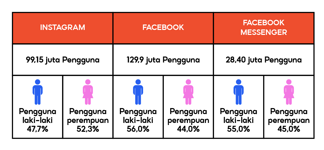 Setiap platform media sosial di atas memiliki karakteristik Pengguna yang berbeda-beda. Maka dari itu, sesuaikan platform dan konten media sosial dengan target calon Pembeli toko Anda. Anda dapat menggunakan sampel data Pengguna dari platform media sosial di bawah ini sebagai referensi dalam memutuskan media sosial mana yang tepat bagi toko Anda.